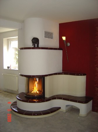 Runder Kamin 180° mit Sitzbank