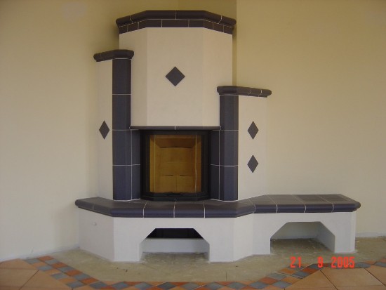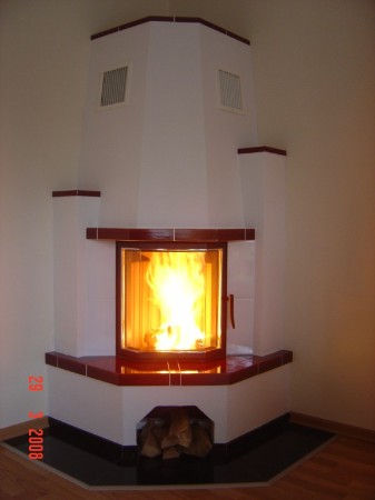 Kamin mit prismatischer Scheibe hochschiebbar, Kachelabdeckungen